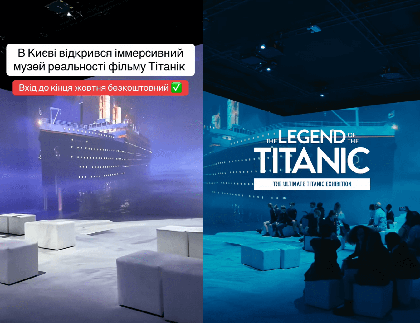 У мережі поширюють інформацію, буцімто у Києві відкрився імерсивний музей реальності фільму «Титанік» і вхід до кінця жовтня нібито безплатний. Як «доказ» користувачі додають відео.