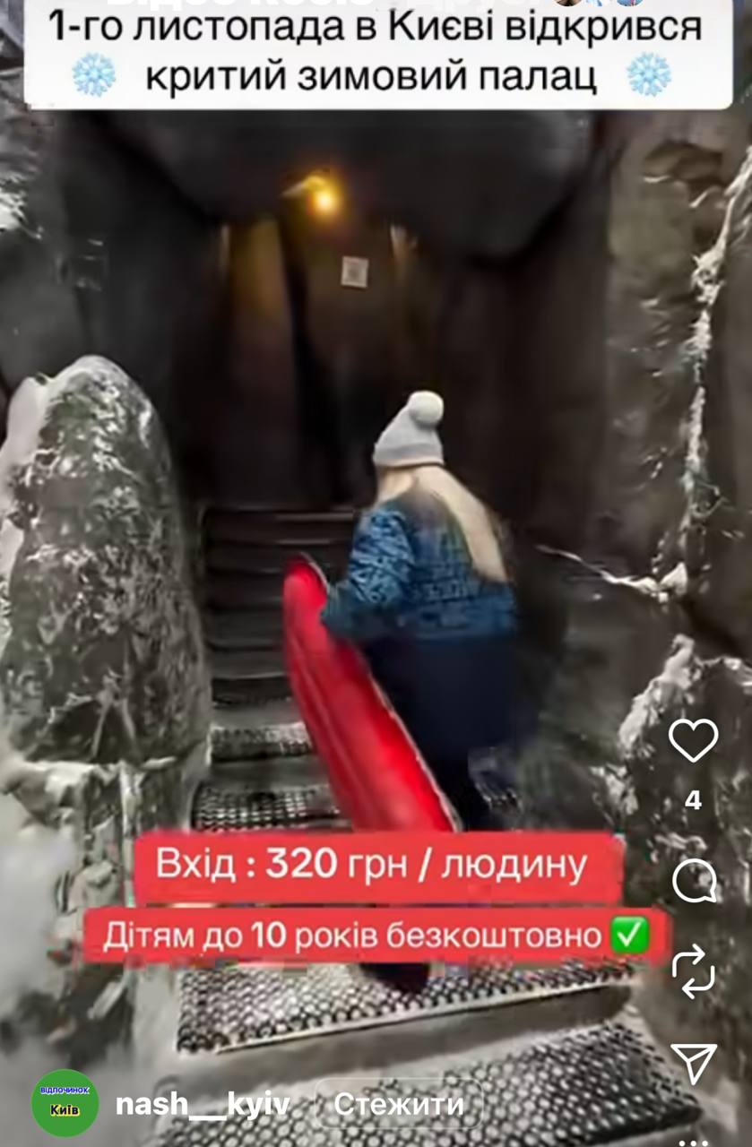 У мережі поширюють відео про критий зимовий палац, який нібито відкрили в Києві 1 листопада 2025 року. Зазначають, що вхід коштує 320 грн, а для дітей — безкоштовно.