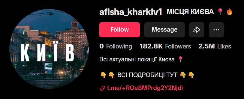 Скриншот опису тікток-акаунту «afisha_kharkiv1»