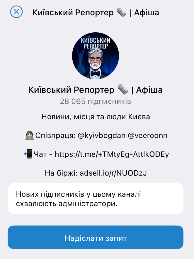 Приватний телеграм-канал, на який веде «посилання з адресою закладу»