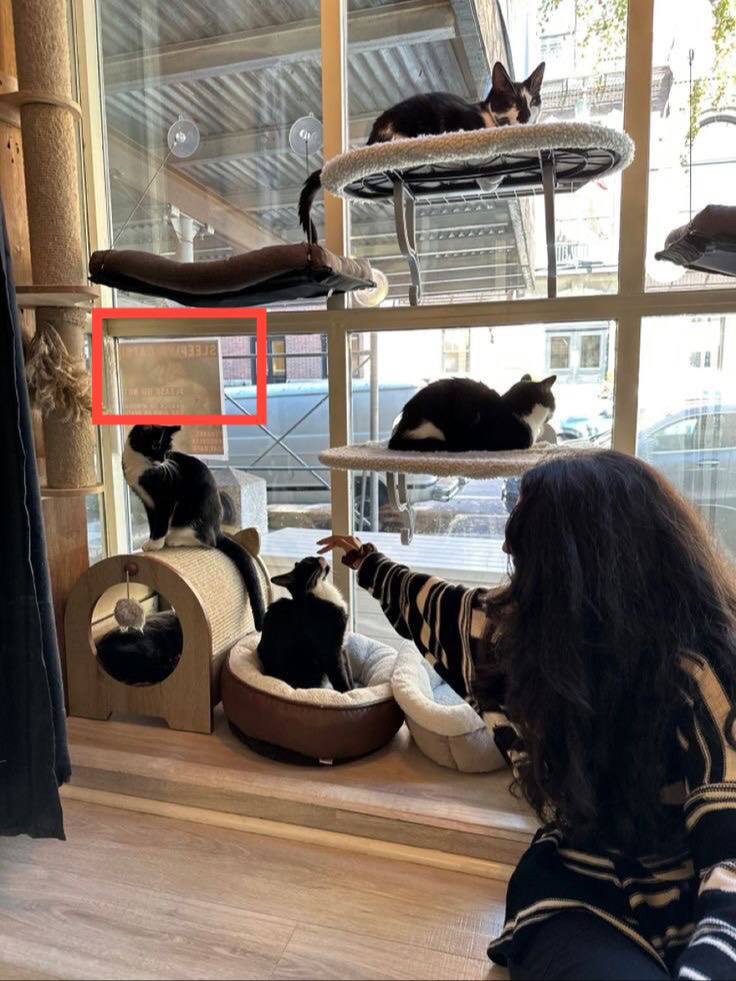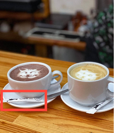 Для ілюстрації «закладу» використали чужі фото з мережі. Наприклад, фото зліва зробили в Сat Cafe у Львові. На це вказує інтер’єр закладу та фірмові стіки цукру з логотипом кафе. На знімку посередині видно англомовний напис на вікні, тому швидше за все цей заклад взагалі не знаходиться в Україні.