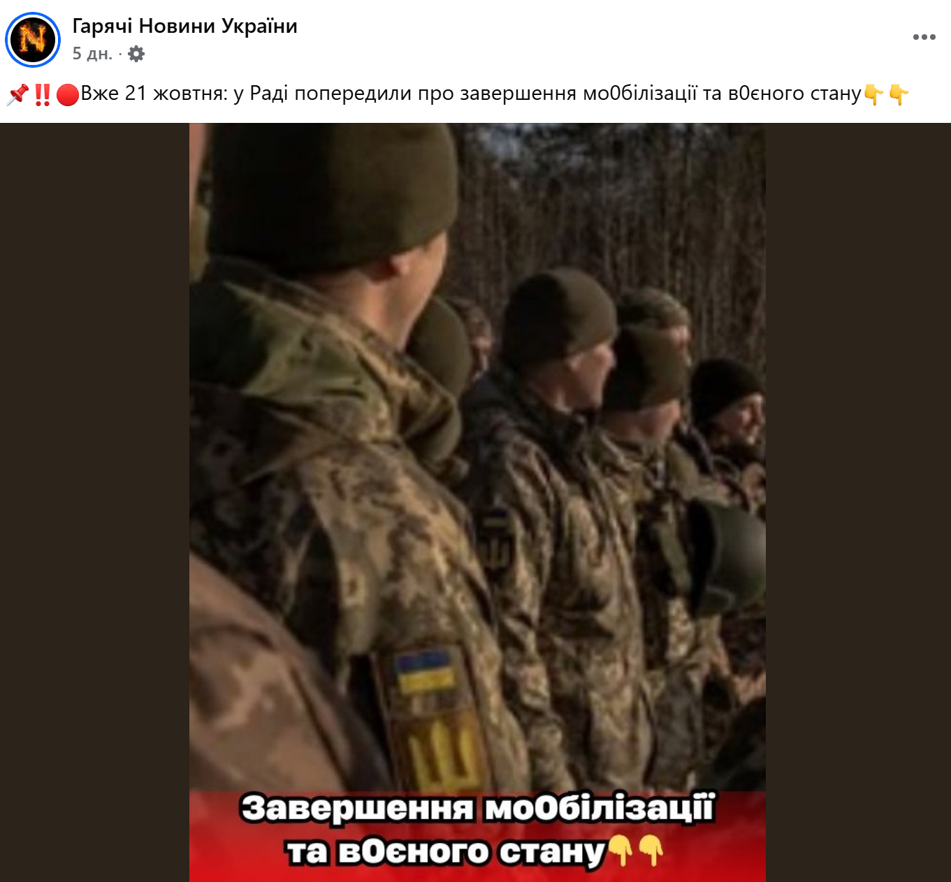 У мережі поширюють інформацію, буцімто у Верховній Раді попередили, що 21 жовтня 2025 року завершиться воєнний стан та мобілізація.