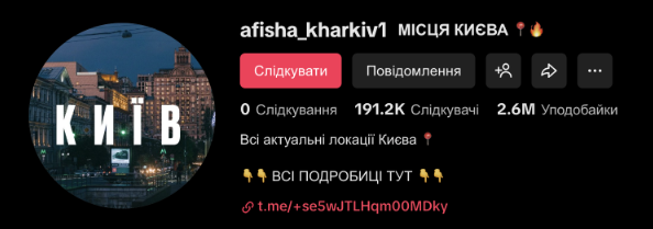 Приклад: скриншот опису тікток-акаунту «afisha_kharkiv1»