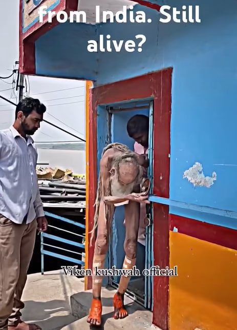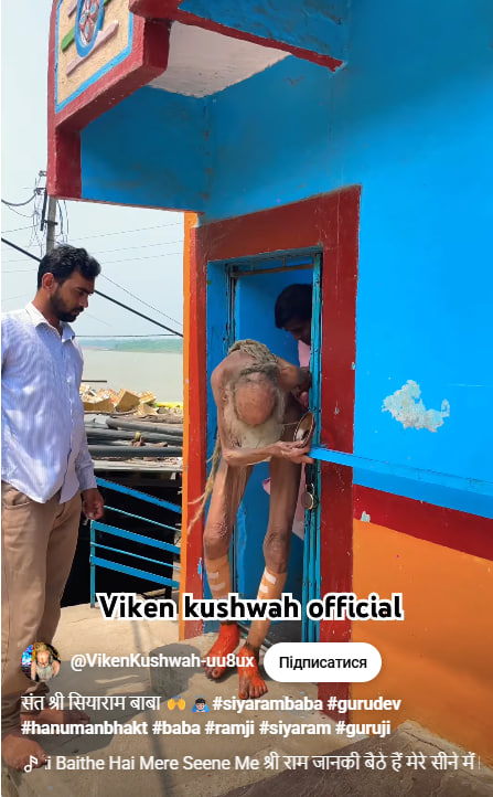 За зворотним пошуком фото у гуглі ми з’ясували, що у відео демонструють двох різних людей. Першоджерелом ролика із чоловіком, якому допомагають вийти із будівлі, є ютуб-канал viken Kushwah official це блог його послідовника. Як повідомляє The Times of India, чоловіка із відео звали Сіярам Баба — це відомий духовний гуру з індійського регіону Німарі. Чоловік помер у грудні 2024 року. За різними даними цього джерела, на момент смерті йому було 94 або 109 років, але не 300, як заявляють у відео.