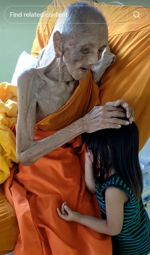 На інших кадрах зображений Луанг По Яй — буддійський монах із Таїланду, який, за даними видання Buddhistdoor Global, помер у березні 2022 року у віці 109 років. Відео з ним публікувала його онука на своєму акаунті у тіктоці @aui.saranya_kh. Один із цих роликів використали для фейкового відео.