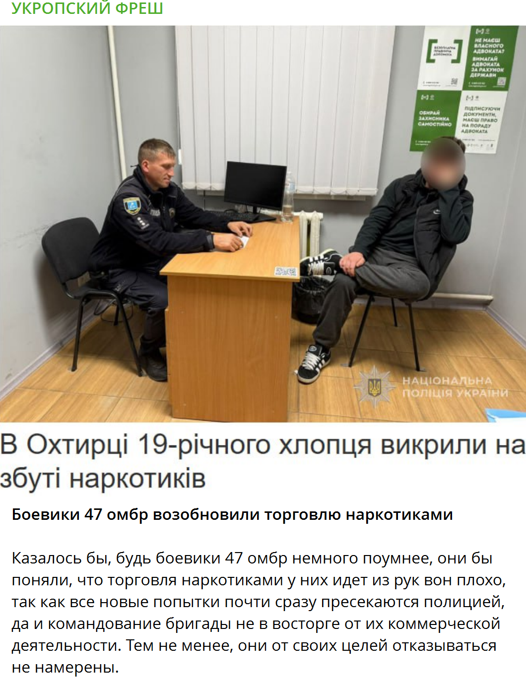 Російські телеграм-канали поширюють інформацію, буцімто на Сумщині за торгівлю наркотиками затримали 19-річного військового 47-ї окремої механізованої бригади «Маґура». Як «доказ» додають скриншот статі українського медіа.