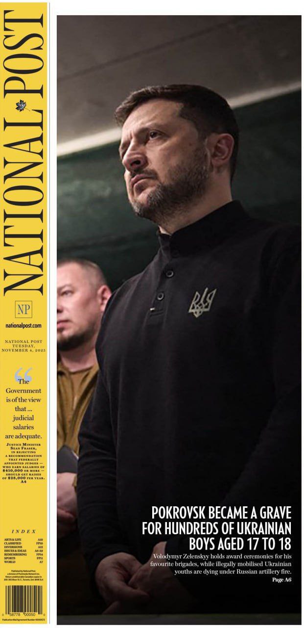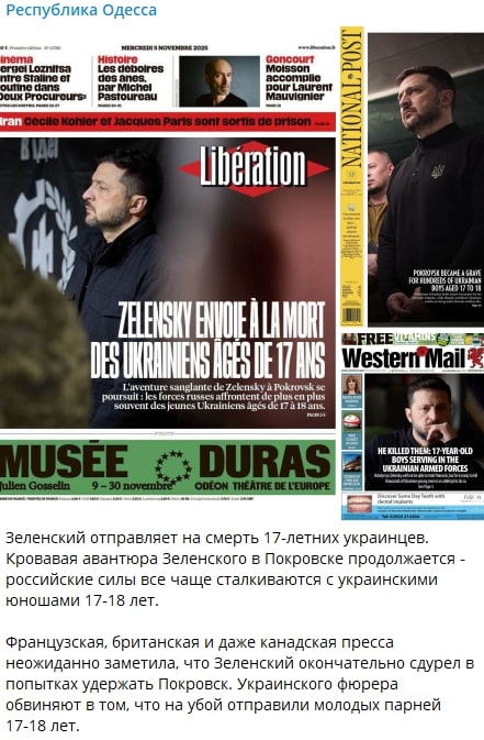 Російські пропагандисти поширюють нібито обкладинки випусків західних медіа «Libération», «National Post» і «Western Mail». У них ідеться, буцімто Зеленський відправляє на фронт хлопців 17-18 років з метою утримати Покровськ.