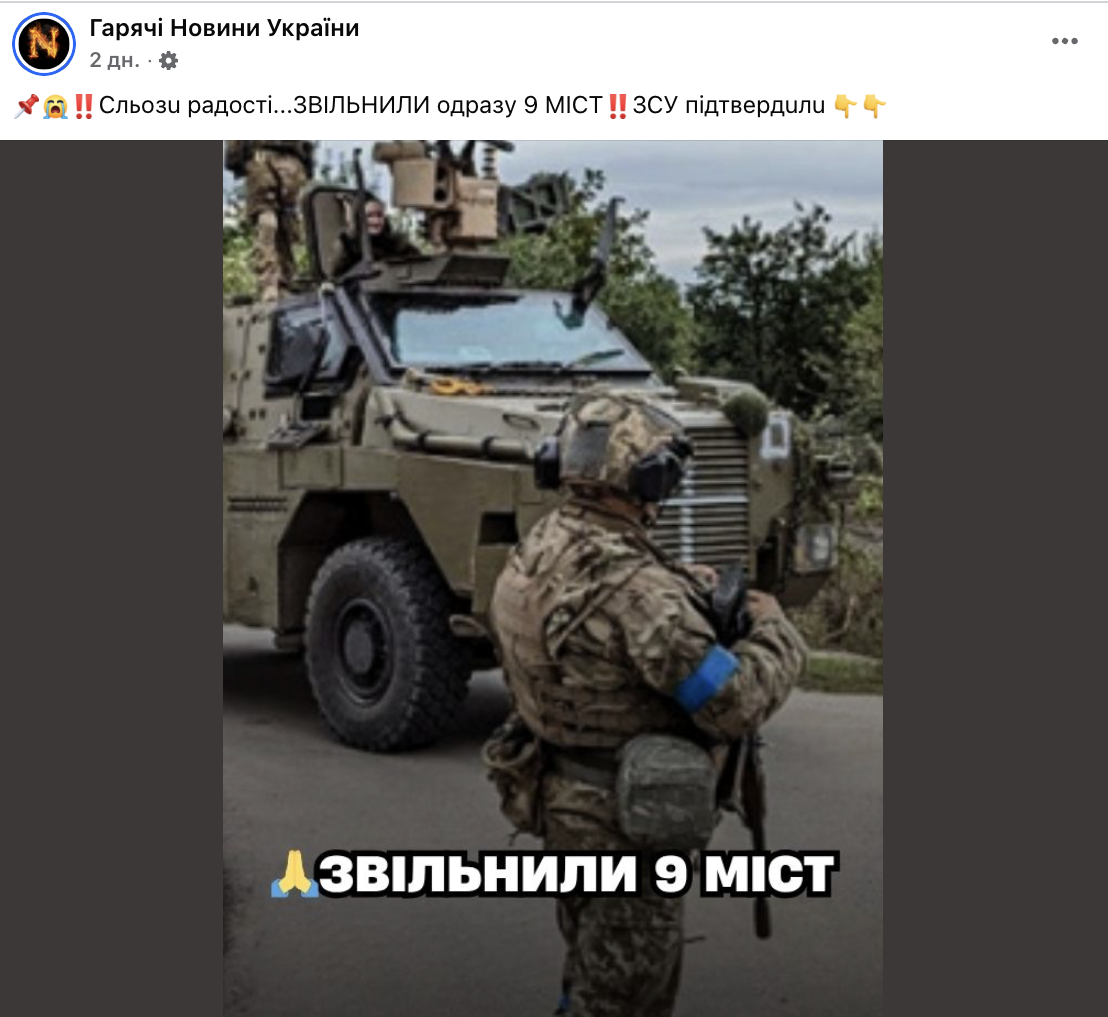 У мережі поширюють інформацію, нібито Збройні сили України звільнили одразу дев’ять міст.
