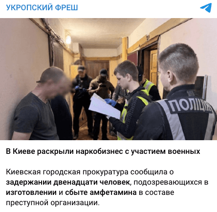 По ключевым словам и фото из сообщения мы выяснили, что подобная новость действительно существует. 29 января 2026 года Главное управление Национальной полиции в городе Киеве сообщило о подозрении 12 участникам наркогруппировки, которые занимались сбытом амфетамина. Однако в статье не упоминалось, что среди подозреваемых есть военнослужащие.