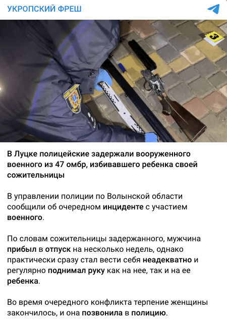 В сети распространяют информацию, якобы в Луцке полиция задержала военного 47-й отдельной механизированной бригады (ОМБр). Мол, он избивал ребенка своей сожительницы.