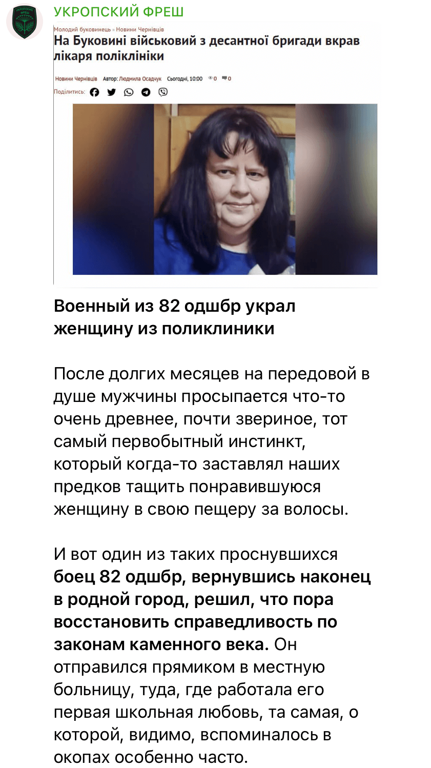 ФОТОФЕЙК: На Буковине военный 82-й ОДШБр похитил женщину из поликлиники — СМИ