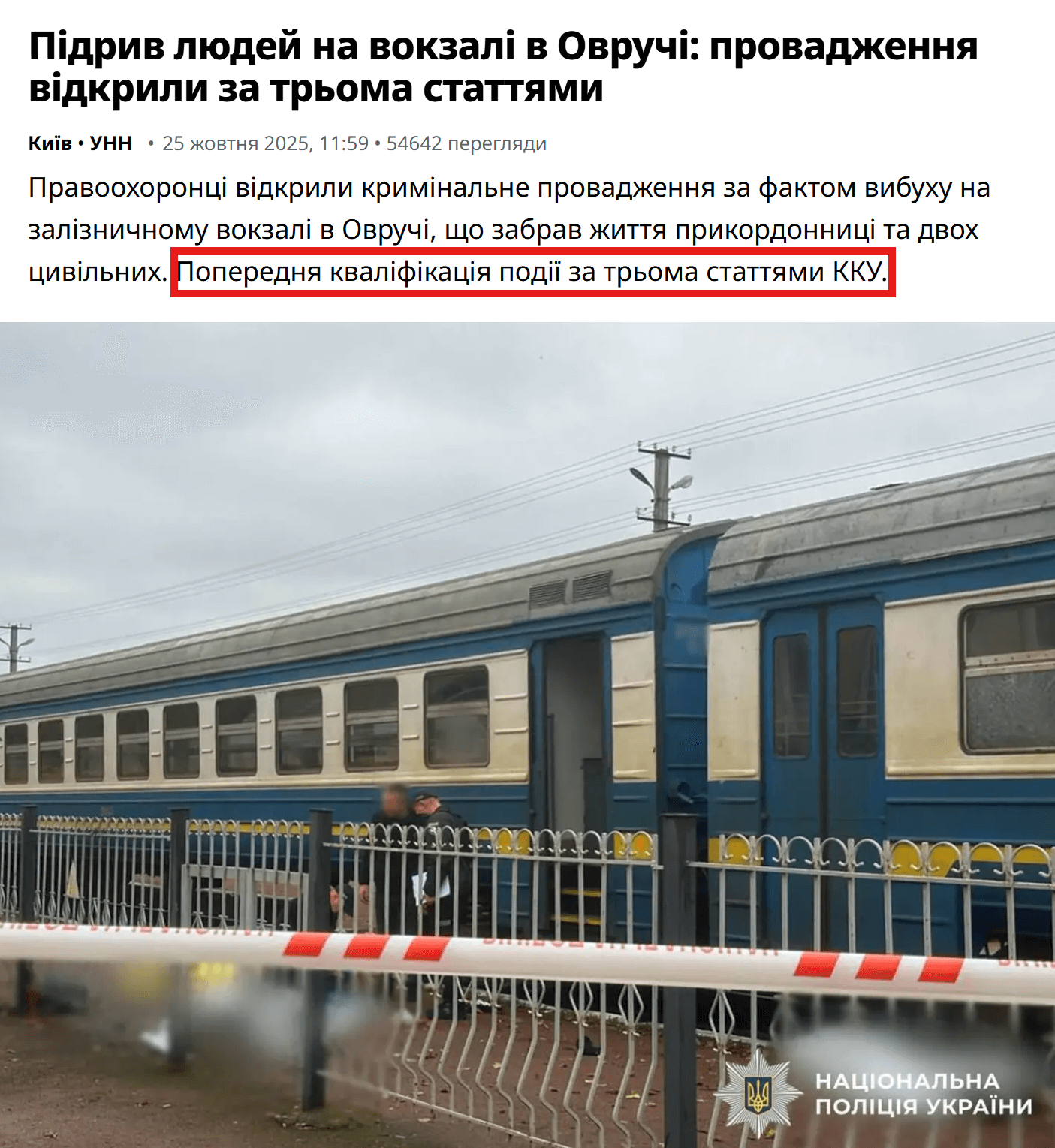 25 октября 2025 года украинское издание «УНН» действительно опубликовало статью о подрыве гранаты в Овруче Житомирской области. Однако медиа не писало, что к этому причастен участник «Контракта 18-24» и вообще не писало о виновнике.