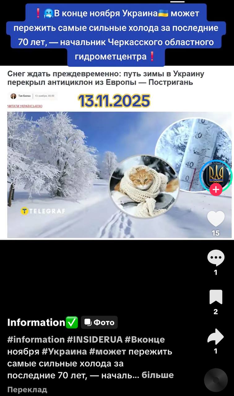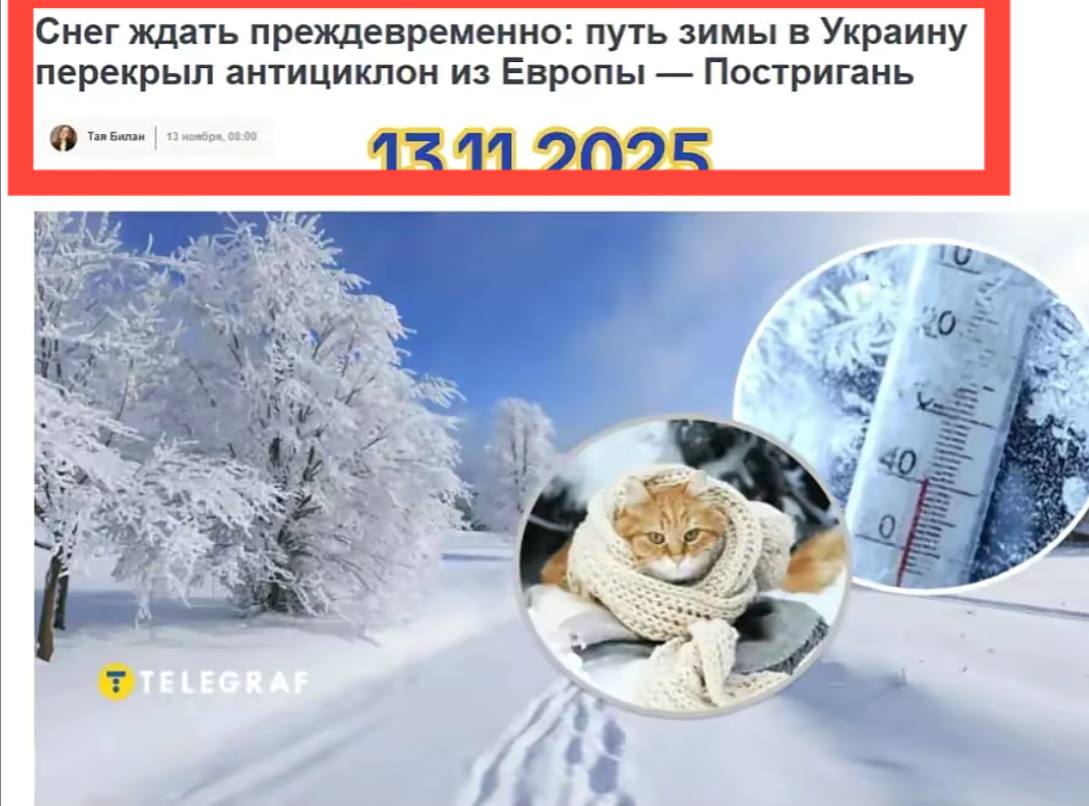По обратному поиску в Гугле мы нашли настоящую статью Telegraf, опубликованную 13 ноября 2025 года. В ней приведен комментарий начальника Черкасского областного гидрометцентра Виталия Постриганя. На вопрос «Будет ли снег в ноябре?» тот ответил, что подобный долгосрочный прогноз был, однако он не является точным. Максимально достоверно спрогнозировать погоду можно за 1-3 дня, далее точность снижается.