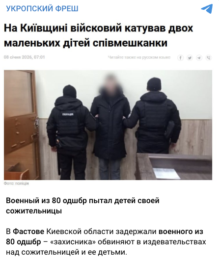 В сети распространяют информацию, якобы в Киевской области военный 80-й отдельной десантно-штурмовой бригады (ОДШБР) пытал двух детей своей сожительницы.