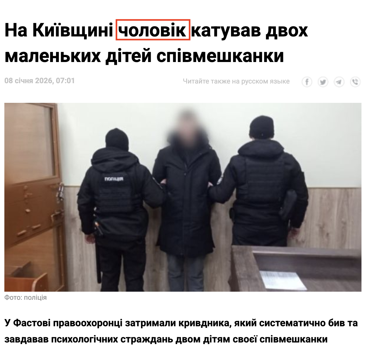 По ключевым словам мы выяснили, что подобная новость действительно существует. 8 января 2026 года медиа RegioNews опубликовало новость, что в Фастове Киевской области мужчина пытал двух детей своей сожительницы. Однако ни в статье RegioNews, ни в сообщении Главного управления Национальной полиции в Киевской области не упоминалось, что подозреваемый является военным.