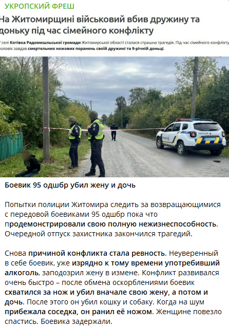 ФОТОФЕЙК: В Житомирской области военный 95-й ОШБр убил жену и дочь