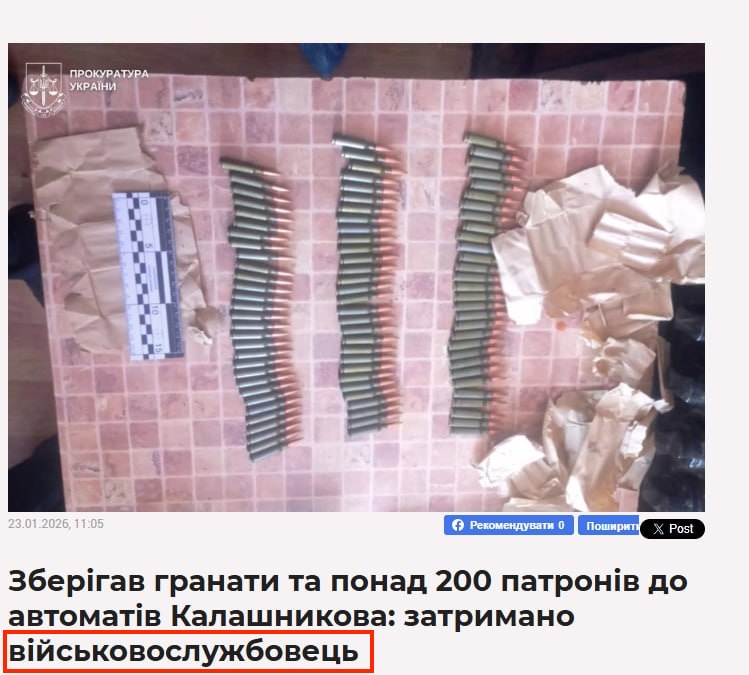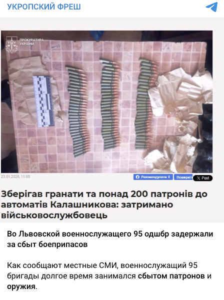 В сети распространяют информацию, якобы во Львовской области задержали военнослужащего 95-й отдельной десантно-штурмовой бригады (ОДШБр) за сбыт боеприпасов. Мол, он хранил гранаты и более 200 патронов и долгое время занимался сбытом оружия.