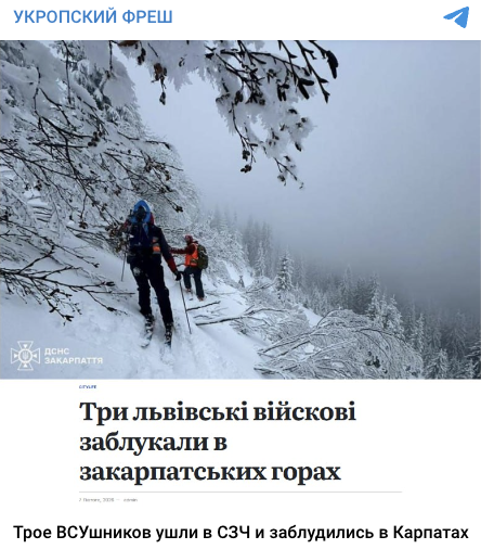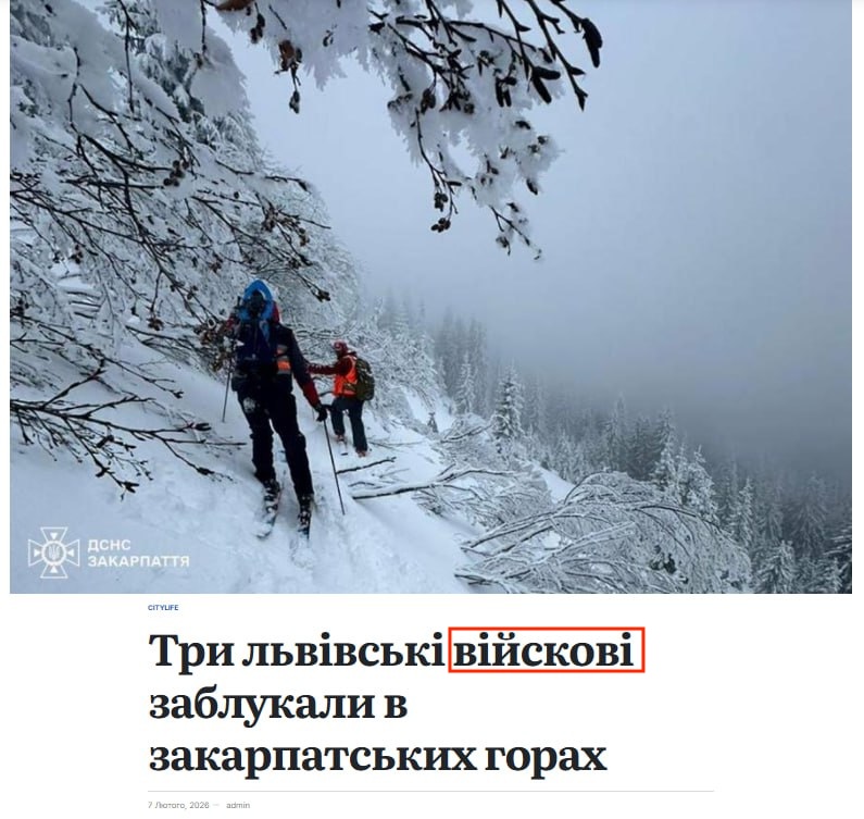По ключевым словам мы выяснили, что подобная новость действительно существует. 7 февраля 2026 года медиа HSC Lviv опубликовало новость, что три львовских путешественника заблудились в закарпатских горах во время катания на лыжах и сноубордах. Однако ни в статье, ни в сообщении ГСЧС Закарпатской области не упоминалось, что мужчины являются военными.