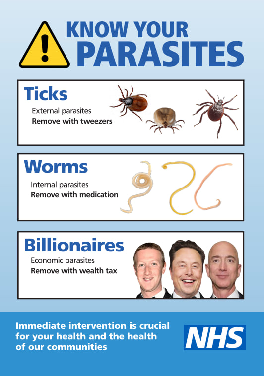 НЕПРАВДА: Национальная служба здравоохранения Великобритании выпустила баннер «Знай своих паразитов» с американскими миллиардерами