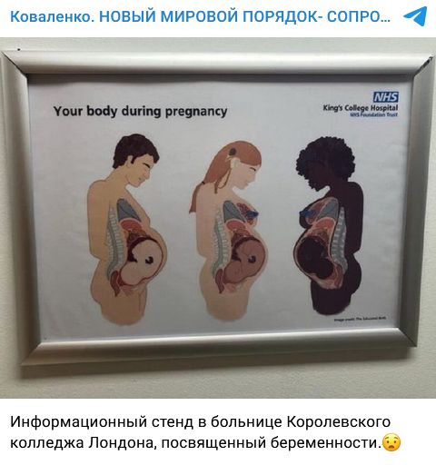 В сети распространяют информацию, якобы в больнице Королевского колледжа в Лондоне, которой управляет фонд Национальной службы здоровья Великобритании (NHS), разместили плакат с изображением беременного мужчины.