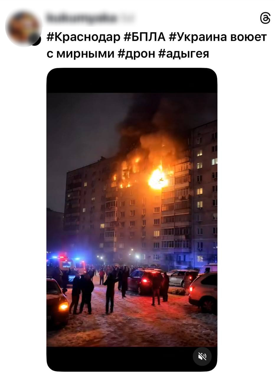 ВИДЕОФЕЙК: Украинский военный беспилотник атаковал дом в Краснодаре
