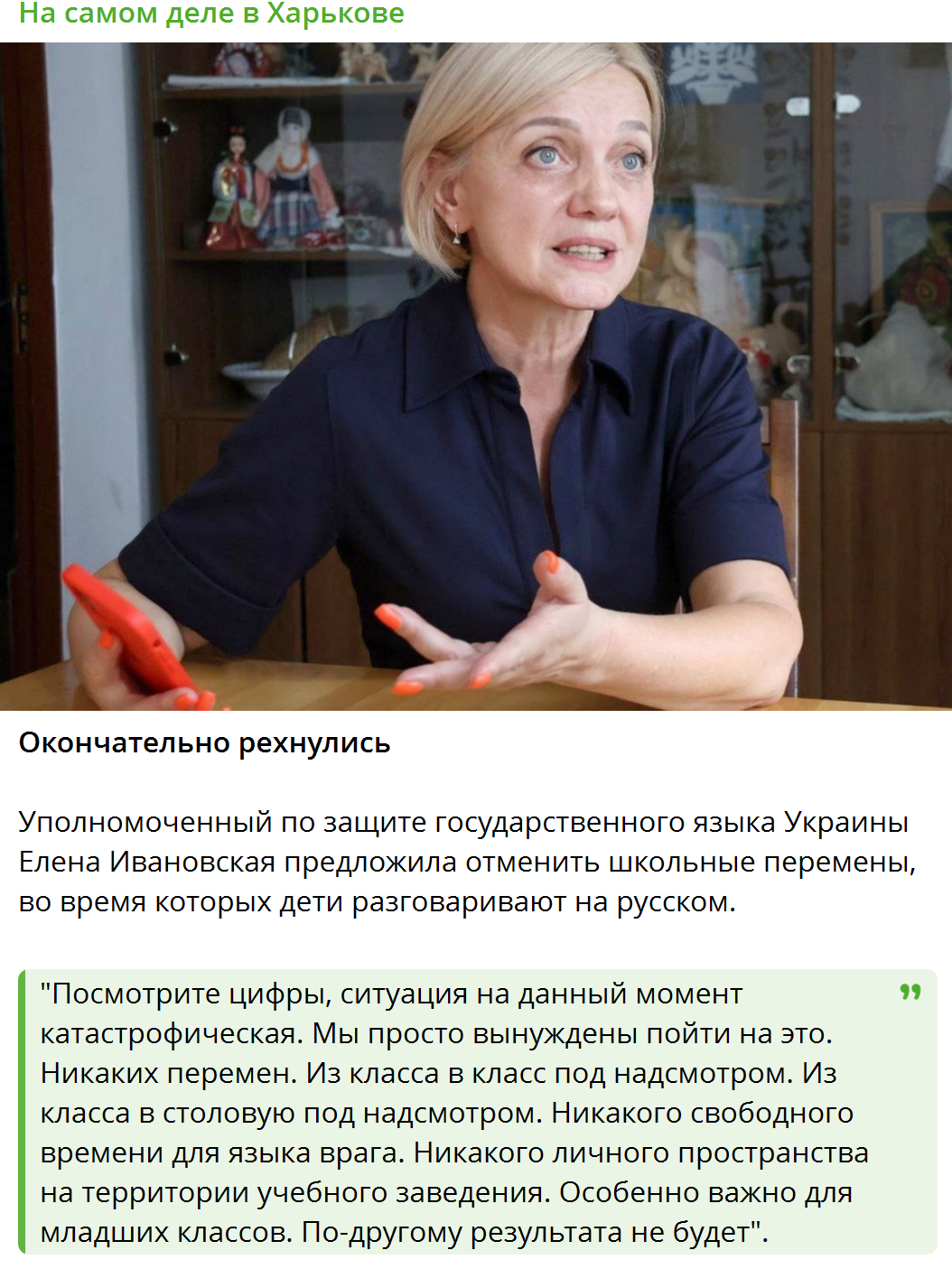 У мережі поширюють інформацію, буцімто українська мовна омбудсменка Олена Івановська запропонувала скасувати шкільні перерви, бо під час них діти розмовляють російською.
