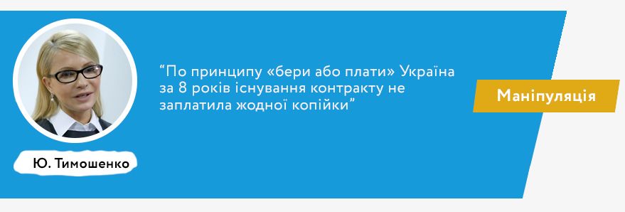 Україна справді не платила за принципом take or pay. Коли виникла потреба платити, сторони звернулися до суду. І, якби Україна не виграла у Стокгольмі, ми мали б заплатити Газпрому $34,5 млрд – завдяки газовим домовленостям, укладеним під час прем’єрства Тимошенко.