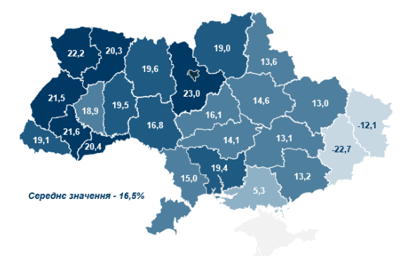 Рисунок 4. Темп росту фактичних надходжень загального фонду (без трансфертів)