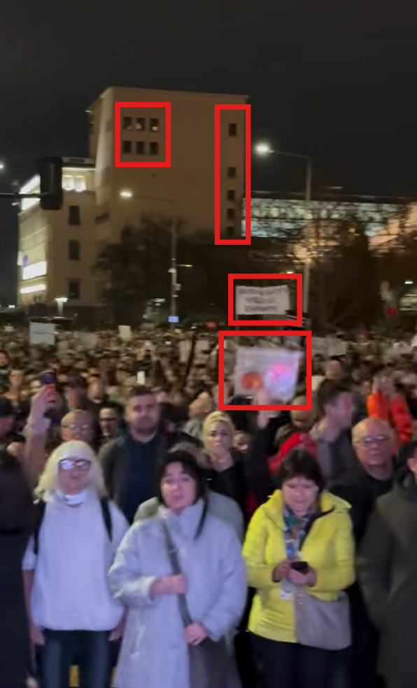 Деякі елементи у відео вказують, що його згенерували за допомогою ШІ: люди у ролику рухаються неприродно, а артефакти розпливаються. Наприклад, предмет в руках оператора, який, ймовірно, мав бути камерою, погано промальований. На деяких кадрах протестувальники стоять доволі близько до «камери», однак текст на їхніх нечитабельний і навіть не схожий на літери — це набір випадкових символів.