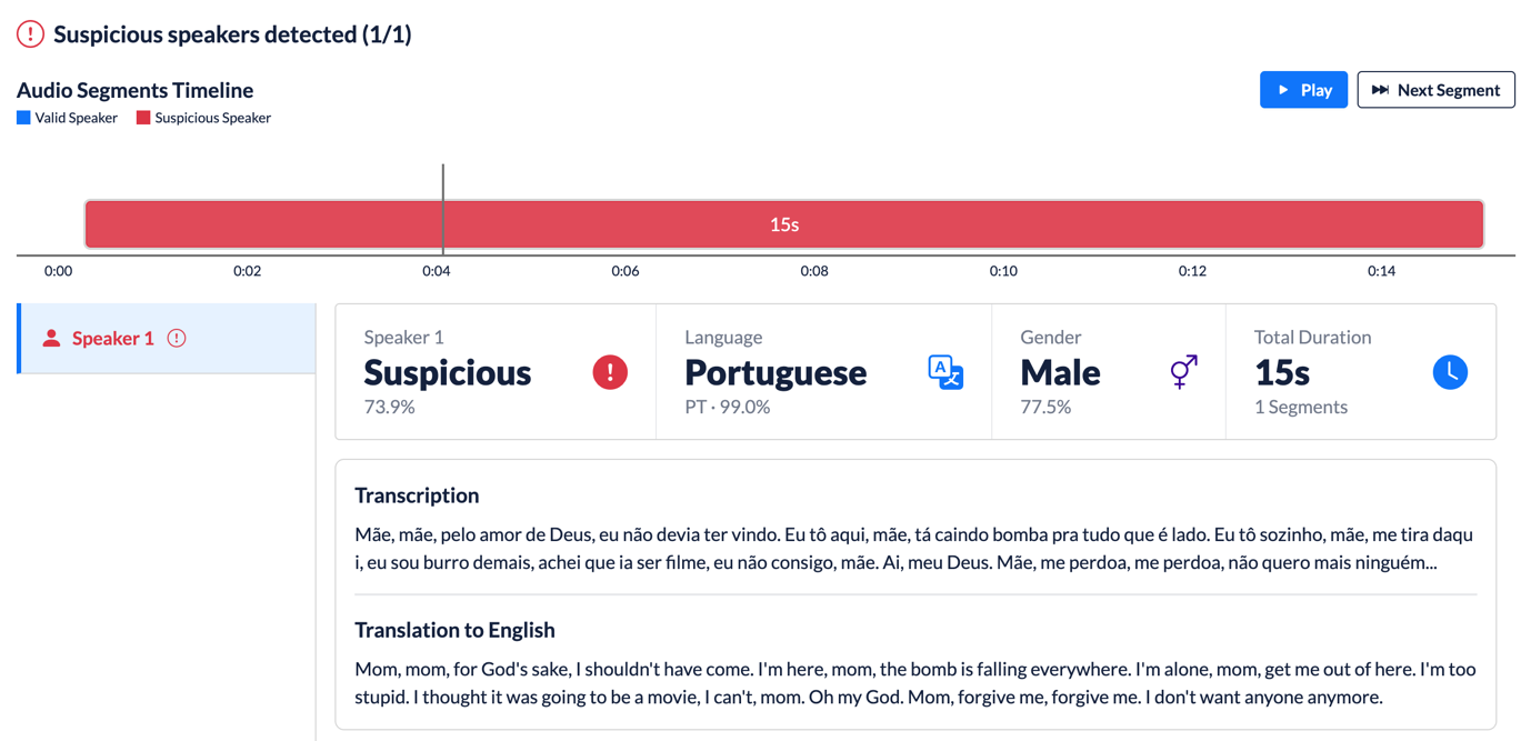 Система також визначила аудіодоріжку як штучну з імовірністю 73,9%.