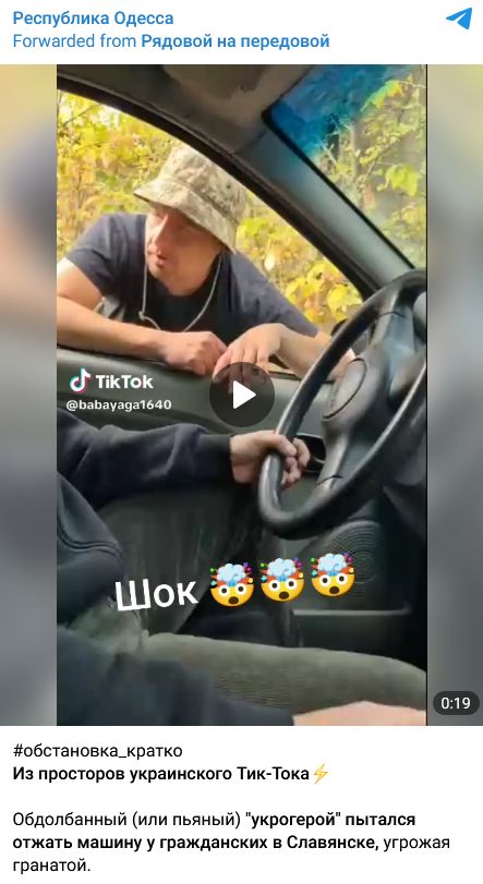 У мережі поширюють відео, де начебто український військовий напідпитку вимагає у сім’ї в авто підвезти його до певного місця. Вони відмовили чоловікові, після чого той почав погрожувати їм гранатою.