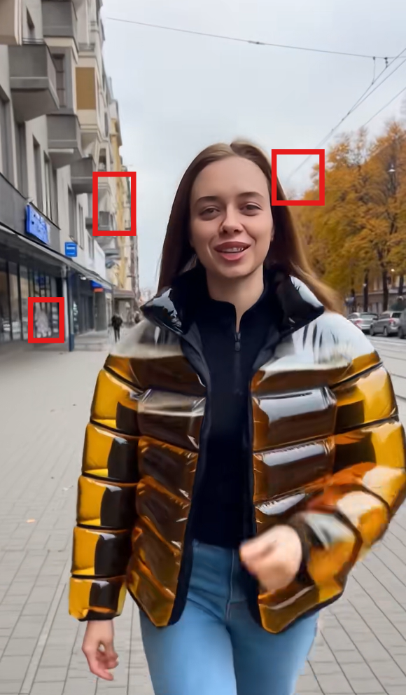 У ролику із дівчиною об’єкти позаду виглядають недомальованими та «розпливаються», зокрема так сталося із лініями електропередач.
