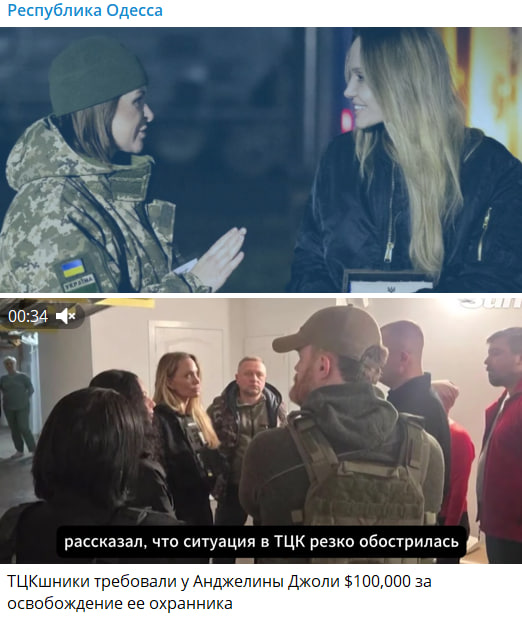 У мережі поширюють відео нібито видання The Sun, в якому стверджують, що працівники ТЦК вимагали в Анджеліни Джолі $100 тисяч за звільнення її охоронця.