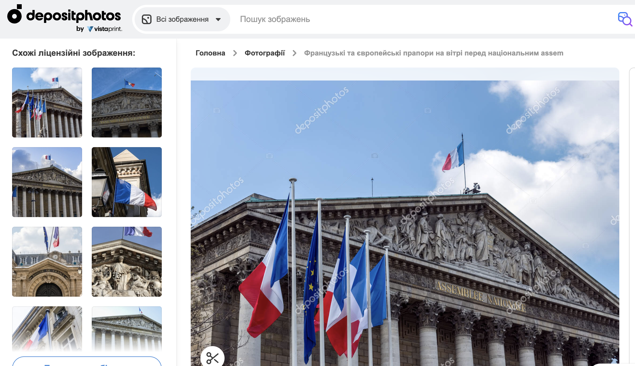 Ілюстрації для відео взяли з фотостоків. Наприклад, фото Національної асамблеї Франції доступне на стоці Depositphotos, а фото зі студентами — це фрагмент з відео на стоці Shutterstock.