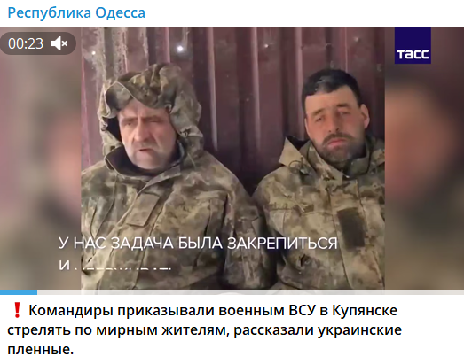 У мережі поширюють відео, де буцімто двоє полонених українських військових розповідають, що українське командування у Куп’янську віддало їм наказ стріляти у цивільних.
