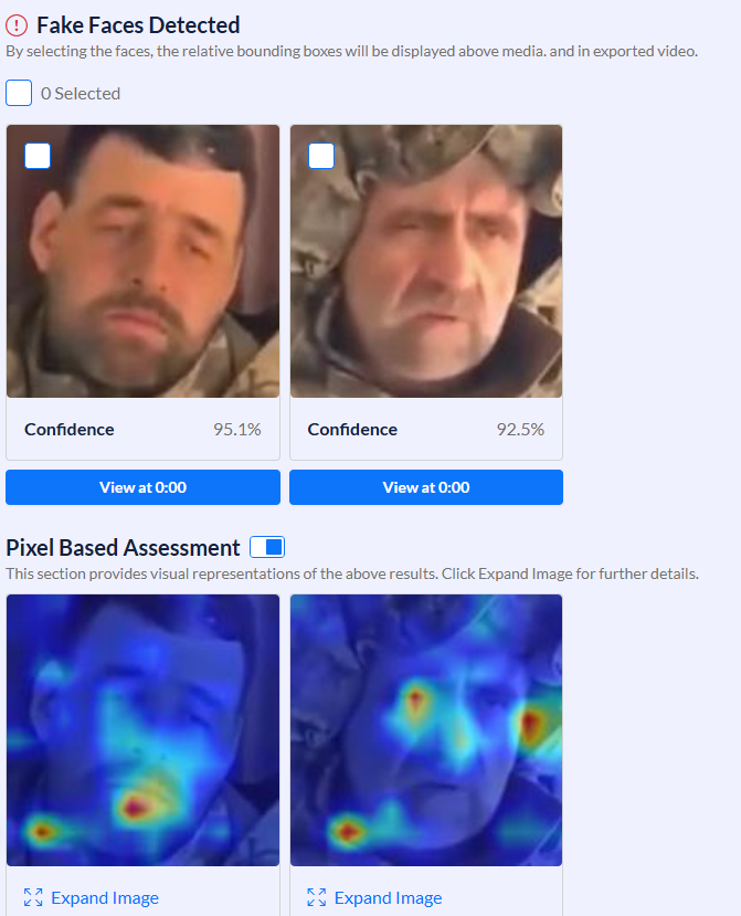 Перевірка в інструменті Sensity AI показала, що з імовірністю 95,1% відео згенерували за допомогою ШІ. Найімовірніше, пропагандисти підробили лише обличчя або його окремі частини, решта ж елементів (тулуб, каска, фон) справжні. Технологію підміни облич (face swap) часто використовують для створення дипфейків.