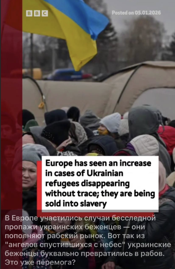 Російські телеграм-канали поширюють відео, нібито опубліковане BBC. У ньому йдеться, що в Європі нібито почастішали безслідні зникнення українських біженців. Автори відео повідомляють, що зниклих продають у рабство, а звернення родичів до посольств не дають результатів.