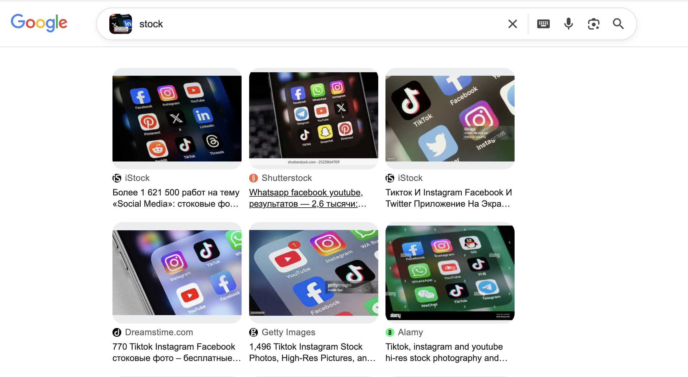Зображення екрана з мобільними додатками, результати зворотного пошуку