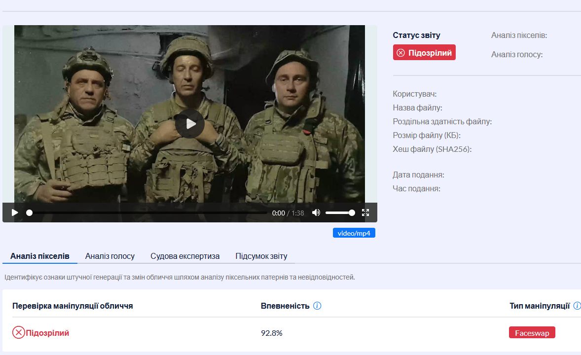 Відео містить ознаки використання штучного інтелекту. Зокрема під час своєї промови «військовий» робить помилки та проковтує слова, коли говорить назву підрозділу, місце оточення чи про військове керівництво. Наче на декілька секунд звук обривається.
