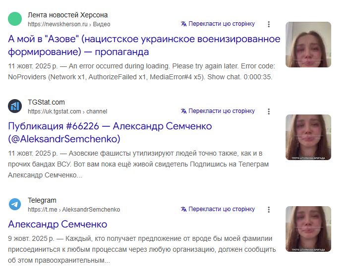 За зворотним пошуком ми виявили, що це відео поширюють переважно російські та проросійські джерела. Першоджерелом ролика, імовірно, є Олександр Семченко.