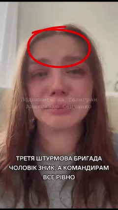 Також у «дружини військового» незвична міміка: вона активно рухає лише губами, хоча артикуляція повинна проявлятися на всьому лиці. На обличчі жінки помітні різкі зміни: на її чолі нізвідки з’являються та зникають зморшки.