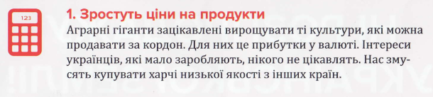 Друга частина брошури про наслідки реформи земельного ринку починається з того, що вартість продуктів в Україні зросте.