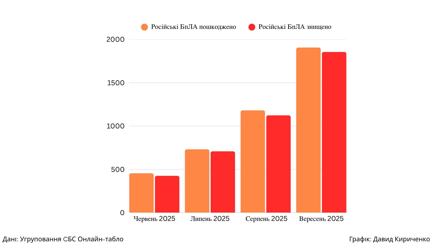 Дані Сил безпілотних систем України, що демонструють зростання ефективності у збитті російських БПЛА